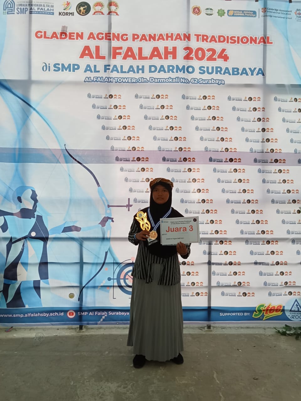 Alifia Radisty Kelas 8B Juara 3 Gladen Ageng Panahan Tradisional Al Falah 2024 di SMP Al Falah Surabaya